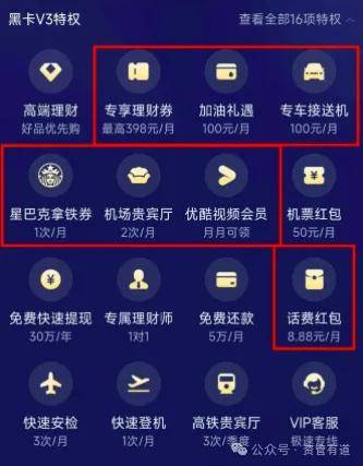 雪球平台上有用户分析,按新规则,要获得与原V3等级同等价值的权益,需将资产提升至600万以上(黑耀卡S2等级),这让资产在100万-600万的“富裕夹心层”感到被“精准放弃”。