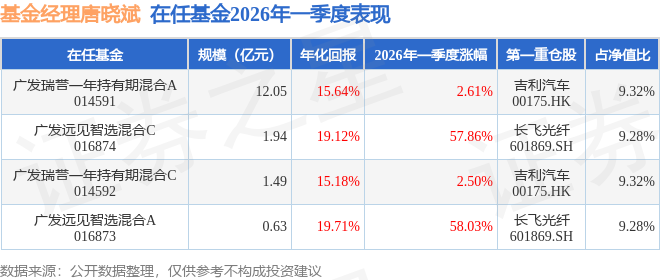 彩票平台- 彩票网站- APP下载 【官网推荐】唐晓斌2026年一季度表现广发远见智选混合A基金季度涨幅5803%